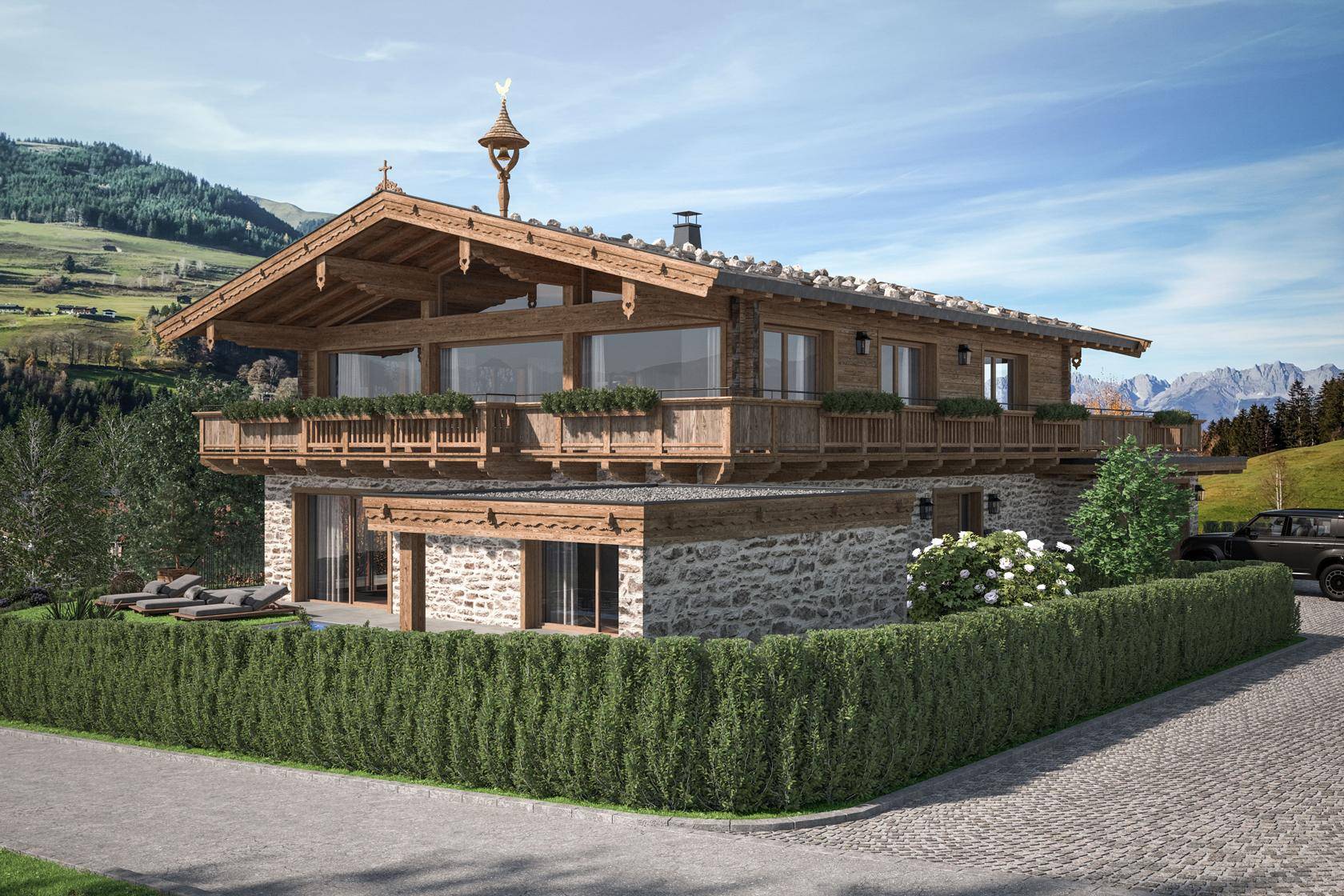 Aurach bei Kitzbühel – wunderschöne Sonnen-, Ruhe- und Ausblicklage auf die Kitzbüheler Bergwelt sowie den Wilden Kaiser, Chalet in der Projektierungsphase mit ca. 335 m² Wohnfläche, offen gestalteter Wohn- und Essbereich mit Sichtdachstuhl in Altholz, Profiküche, Schmutzküche, 4 Schlafzimmer, 4 Bäder en suite, 2 Gästetoiletten, oberirdischer Wellnessoase mit Sauna, Relaxbereich und Außenpool, Weinkeller, separater Verköstigungsbereich, großzügiger Multifunktionalraum, diverse Technik- und Lagerräume, Doppelgarage, Außenstellplätze, überdachte Gartenlaube, riesige Dachterrasse, diverse Balkone und Terrassen, Lichthof, Aufzug, BUS-System, Wohnraumbelüftung, Wärmepumpe, elektrische Raffstore, etc..