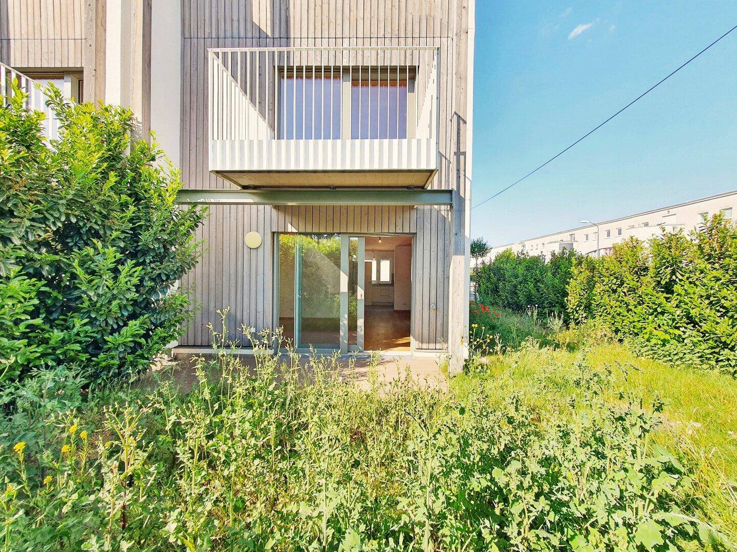 Ein großzügiger Eigengarten (96 m²) und sonnige Balkone/Terrassen (ca. 20 m²) bieten zusätzlichen Lebensraum im Freien.