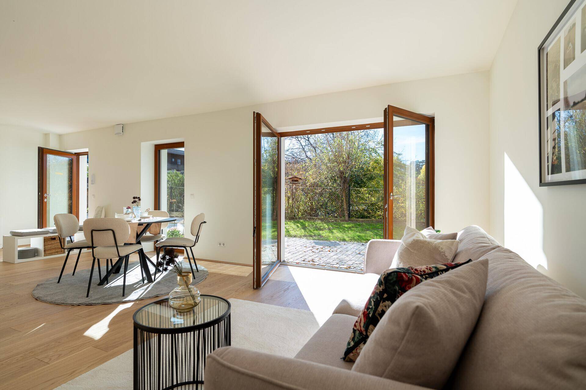 Diese Wohnung im Gartengeschoß verbindet das Gefühl von Natur und Geborgenheit. Ein offener Grundriss mit fließenden Raumübergängen schafft Großzügigkeit, während große Fensterflächen den Blick ins Grüne öffnen. Die Terrasse liegt sonnig und geschützt – perfekt für Frühstück im Freien oder entspannte Sommerabende. Der private Garten bietet Platz für Pflanzen, Liegestuhl und Lebensqualität. Der Grundriss ist dabei flexibel und lässt sich die Wohnung mit wenig Aufwand in eine 3-Zimmer-Wohnung verwandeln.