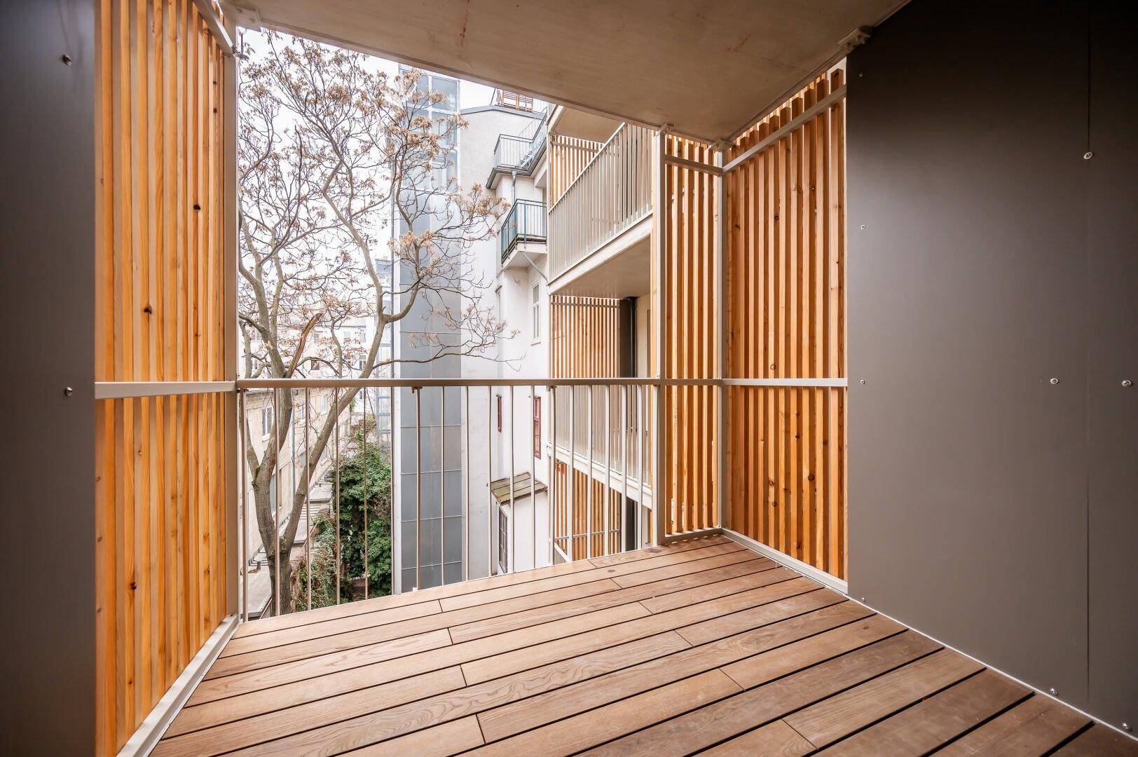 Jede Wohnung ist nicht nur mit einer Freifläche ausgestattet, sondern weißt auch hochwertige Materialien als auch Ausstattung aus: