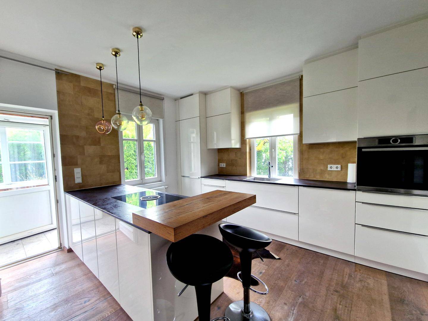 Der gepflegte, uneinsichtige Garten mit altem Baumbestand und einer Außendusche lädt zum Entspannen ein. Die moderne, hochwertige Küche und die gehobene Ausstattung des Hauses ermöglichen ein sofortiges Einziehen und Wohlfühlen.