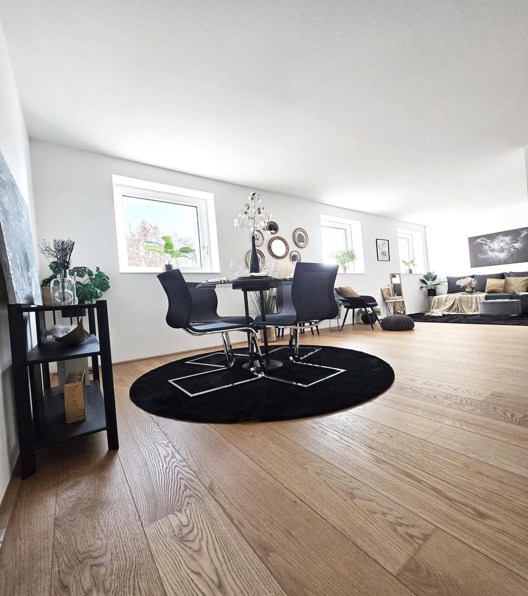 Modernes offenes Wohnen großzügige Fensterflächen in allen Räumlichkeiten hochwertiger Parkettboden Fußbodenheizung (Fernwärme) hochwertige Tischler-Einbauküche inkl. Geräten im Wert von über € 22.000,- Großes Schlafzimmer mit Ankleide Bad mit XXL-Dusche WC separat