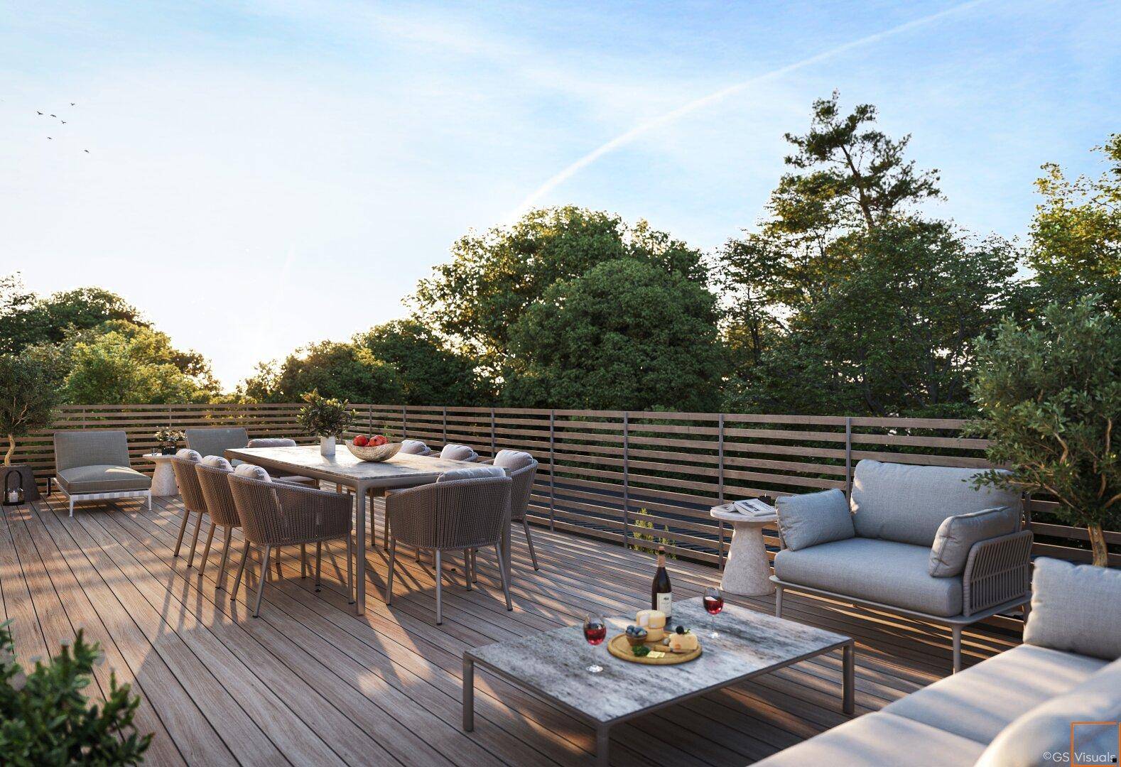 WanderWILLA - Das Penthouse top 5Dieses Penthouse erfüllt alle Wünsche: drei Schlafzimmer, ein toller Wohn-Essbereich und eine das Gebäude umlaufende Terrasse mit Grün- und Weitblick!