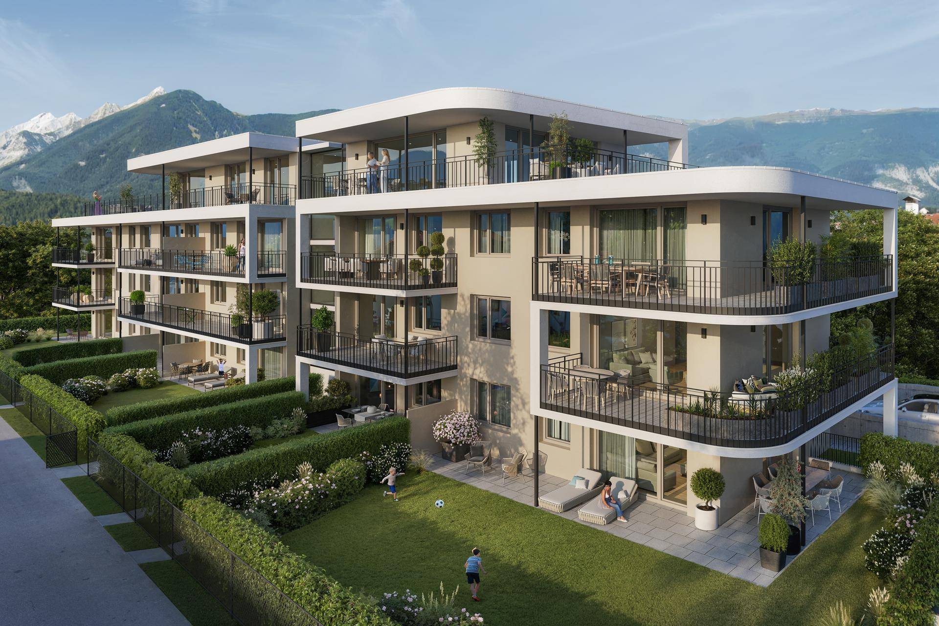 Das Wohnprojekt LINEA in Schwaz überzeugt durch eine hochwertige Ausstattung, die modernes Wohnen mit Komfort und Nachhaltigkeit vereint. Die Wohnungen sind mit großzügigen Terrassen, Balkonen oder weitläufigen Gartenflächen ausgestattet, die ein offenes und harmonisches Wohngefühl schaffen. Hochwertige Materialien wie Eichenparkett in den Wohnbereichen und Feinsteinzeug in den Sanitärräumen unterstreichen die gehobene Qualität. Eine innovative Luftwärmepumpe sorgt für energieeffiziente Beheizung und Kühlung, während großzügige Kellerabteile zusätzlichen Stauraum bieten. Für ein angenehmes Wohnklima sind Fenster mit Dreifachverglasung sowie vorbereitetem Sonnenschutz Standard. Zudem erfüllt das Projekt alle modernen Ansprüche an Nachhaltigkeit, mit einer umweltfreundlichen Bauweise und Photovoltaikanlagen, die die Allgemeinbereiche versorgen. LINEA bietet somit eine perfekte Kombination aus Stil, Funktionalität und ökologischem Bewusstsein.