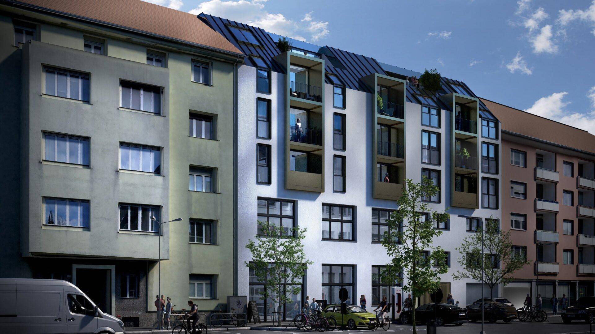 Die neuwertige Wohnung liegt im 3. Obergeschoss eines 2024 errichteten Neubaus und verfügt über eine Wohnfläche von ca. 65,17 m². Der offen gestaltete Wohnbereich überzeugt durch hochwertige Parkett- und Fliesenböden sowie einen direkten Zugang zur westlich ausgerichteten Loggia (ca. 4,87 m²) mit schönem Stadtblick.