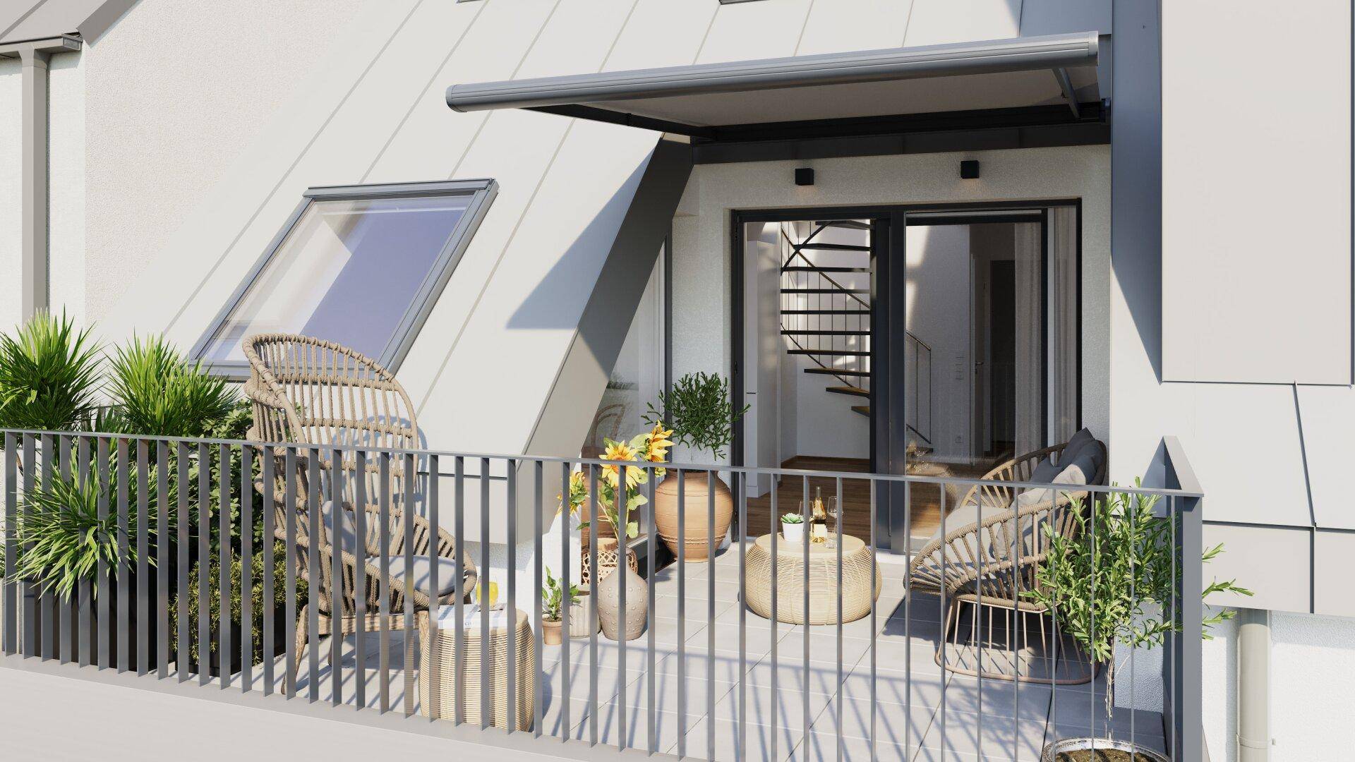 Die Wohnungen bieten großzügige Balkone oder Loggien, vereinzelt auch weitläufige Terrassen oder einen privaten Garten. Die Außenbereiche laden zum Entspannen und Genießen der in der frischen Luft ein. Vor allem die exklusiven zweigeschossigen Mansarden-Wohnungen von 101 bis 164 m² sind besonders reizvoll.