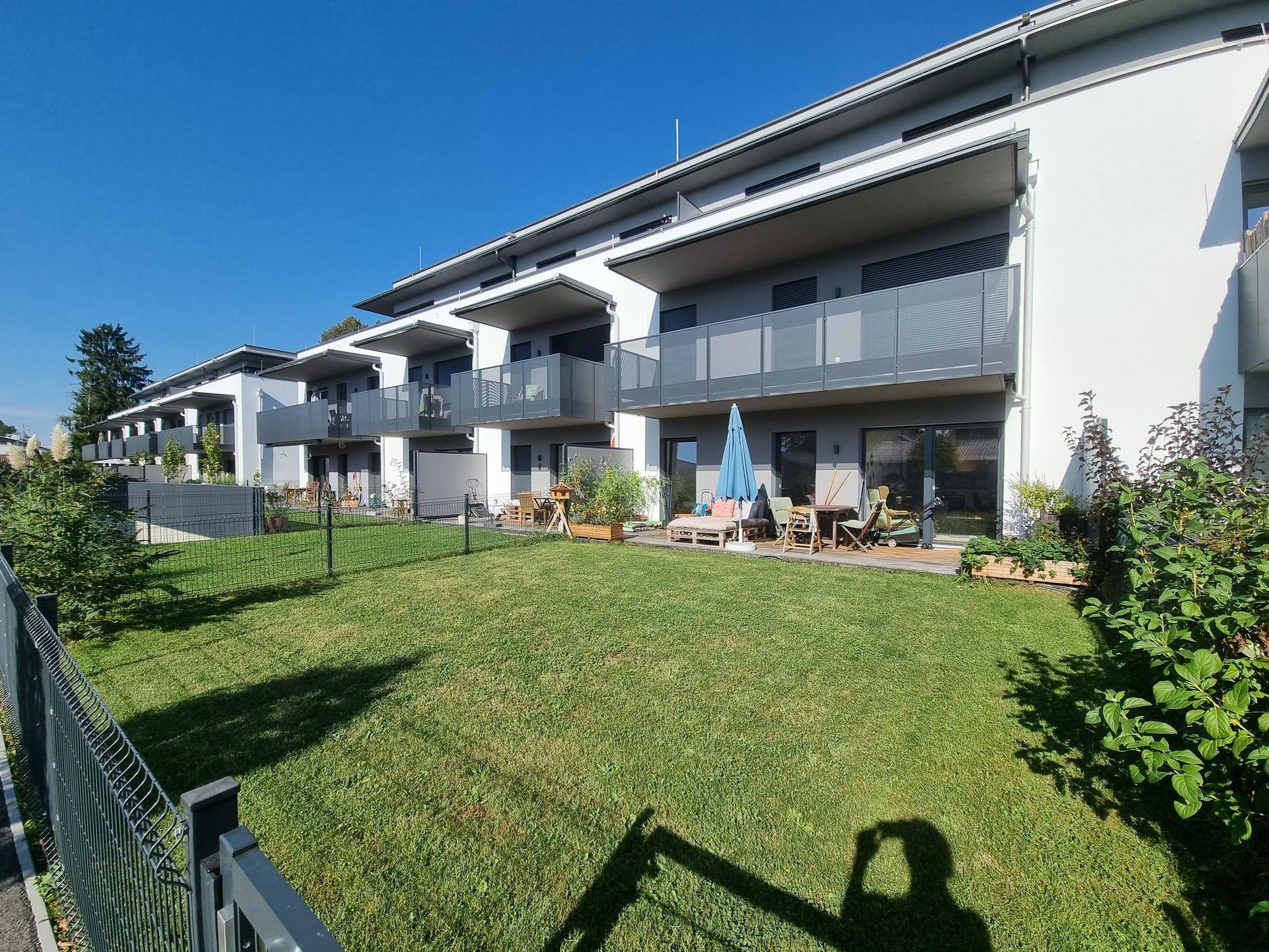 Sehr gut ausgestattete exquisite Wohnung in Grünruhelage, begehrte Gegend in Graz St. Peter (Kitnerweg), großzügiger eingezäunter Garten, geräumige südwestlich ausgerichtete Terrasse, hochwertige Wohnküchenarchitektur in Eichen- und Granitoptik vom Tischler, Bad und WC (Tageslicht) mit Doppelwaschtisch, Badewanne und Sprossenheizkörper, Eichenparkett und Feinsteinzeugböden, Fußbodenheizung (Fernwärme), elektrische Sonnenrollos im Wohn- und Schlafbereich, getrennter Abstellbereich, geräumiges Kellerabteil, Tiefgarage mit eigenem Starkstromanschluss; Die helle und freundliche Top befindet sich in einer modernen Wohnanlage (Bj. 2022) umgeben von großzügig angelegten Grünflächen, ideal für Gartenfreunde, Jungfamilien und Haustierbesitzer. Der große Eigengarten sowie die sonnige Terrasse bieten viel Platz zum Entspannen, Gärtnern oder für gemütliche Abende im Freien. Ruhig und dennoch sehr gut angebunden: das Zentrum ist in wenigen Minuten mit Bus 72 und die TU Graz mit Fahrrad in 8 Minuten zu erreichen. Kindergarten und Schule sind 10- 15 Minuten Fußweg entfernt. -