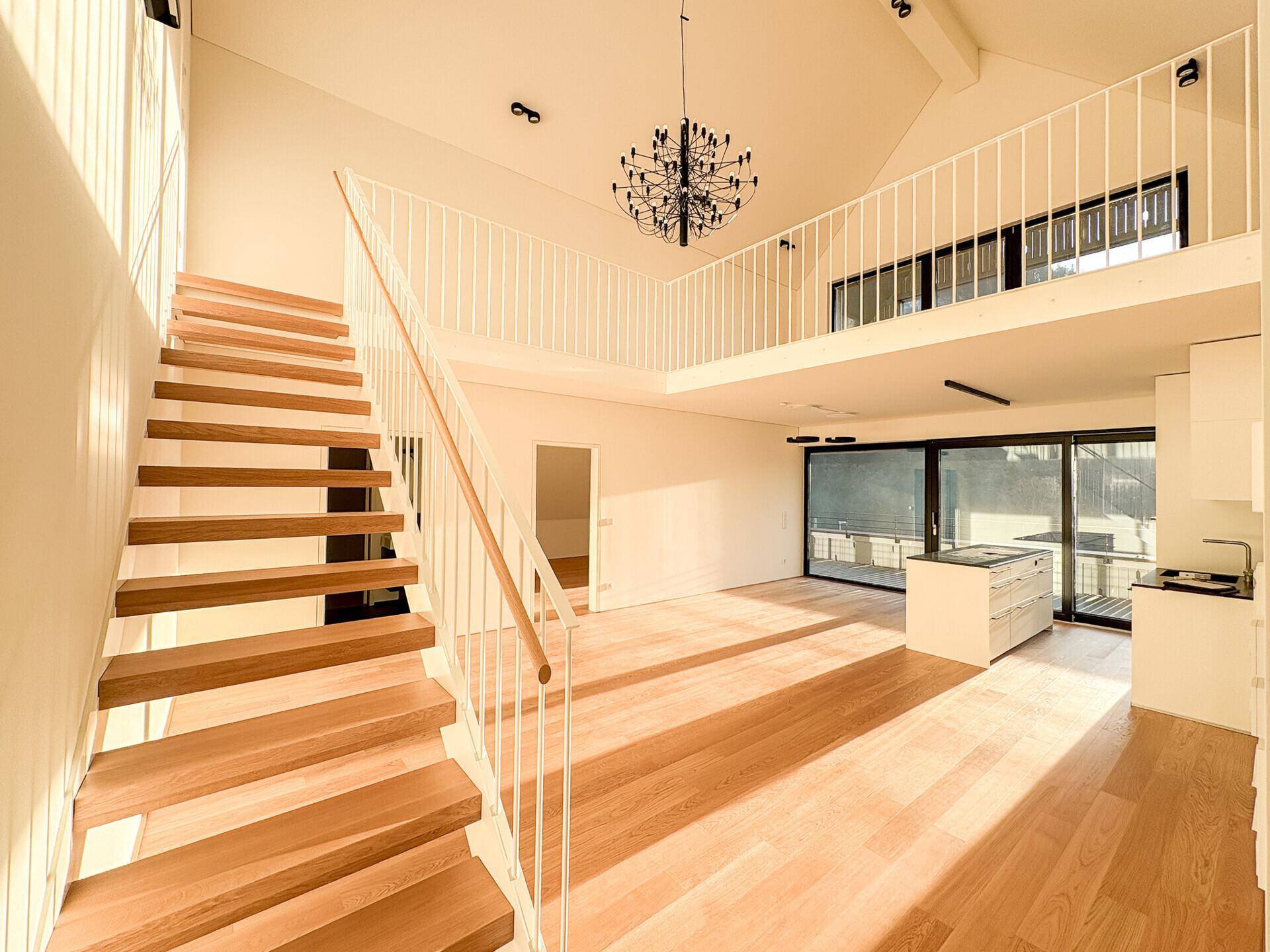 Über die Treppe gelangen Sie in die Galerie (3. OG), die sich ideal als Arbeitsbereich, Leseecke oder zusätzlicher Wohnraum eignet. Von hier aus haben Sie direkten Zugang zur zweiten Terrasse, die zum Entspannen im Freien einlädt.
