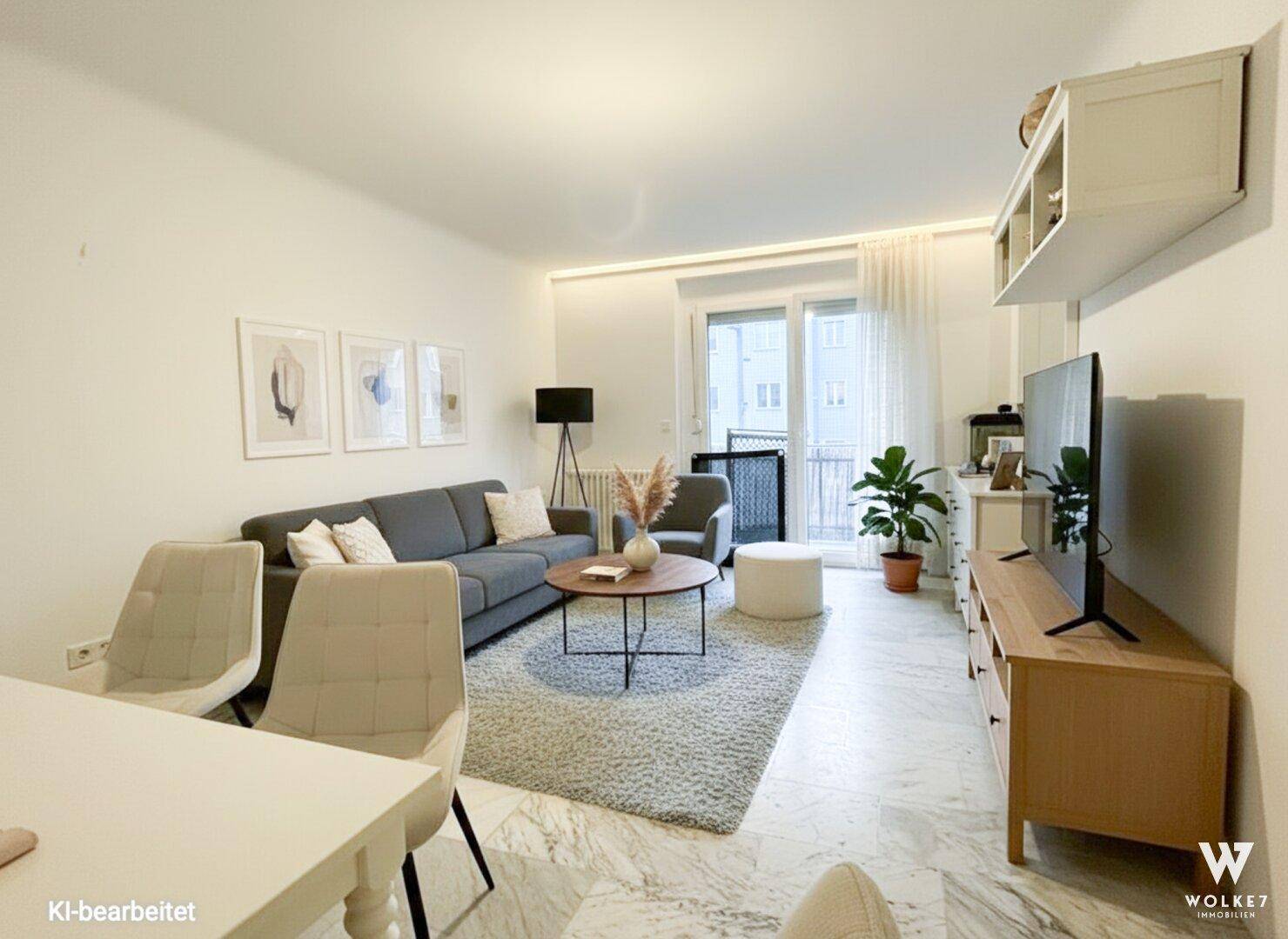 Die dargestellte Möblierung im Exposé wurde digital erstellt, um die Privatsphäre der Mieterin zu wahren, und dient ausschließlich der Visualisierung.