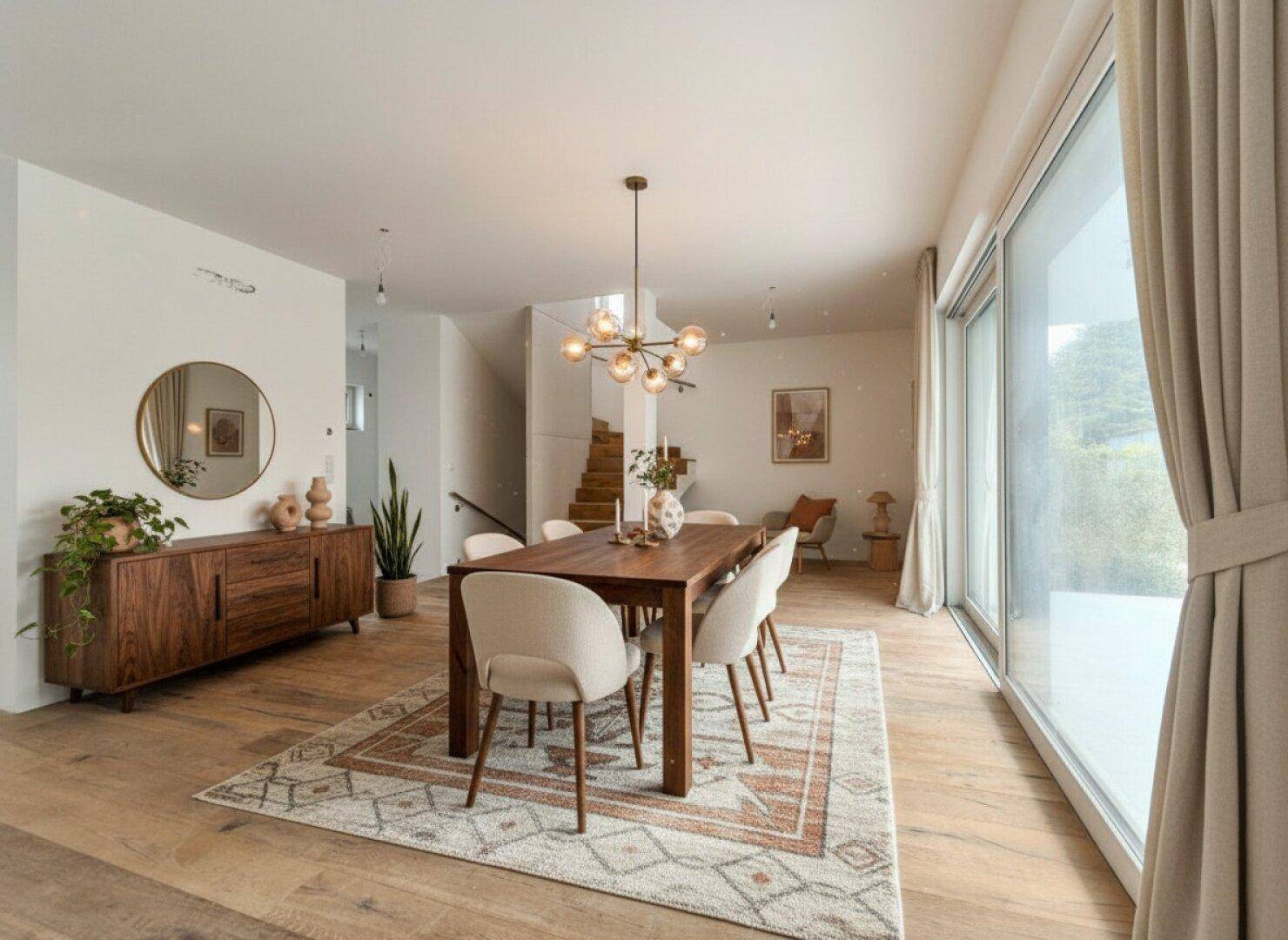Mit viel Liebe zum Detail und einer durchdachten Planung wird das Haus zu einem Ort, an dem Sie sich rundum wohlfühlen werden. Der offene Wohn- und Essbereich, die großzügigen Fensterfronten, die Fußbodenheizung sowie die Balkone und Terrassen versprechen einen hohen Wohnkomfort.
