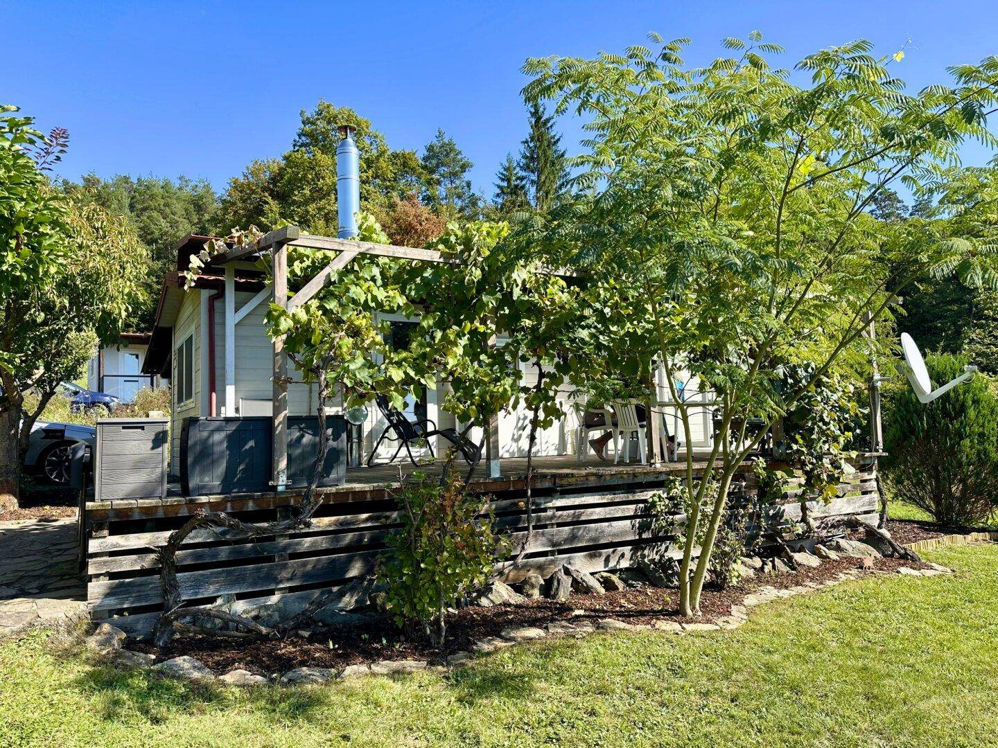 Das charmante und sehr gepflegte Mobilheim bietet auf einer großzügigen Fläche von ca. 33 m² (Außenmaße Haus) den perfekten Rückzugsort für erholsame Tage in der Natur, und ist ebenso ideal als Wochenend- oder Ferienhaus geeignet. Umgeben von viel unberührter Landschaft und gleichzeitig zentrumsnah, findet man hier die ideale Kombination aus Erholung und Lebensqualität. Die schöne Immobilie befindet sich auf einem (unbefristeten) Pachtgrundstück mit rund 234 m² Gartenfläche mit Baumbestand, das ruhig an einem sonnigen Südhang mit angrenzendem Waldstück gelegen ist. Das überaus komfortable Mobilheim verfügt über eine Wohnraumlüftung, Infrarot-Paneele, einen Kaminofen Fa. Oranier und Schiedel Außenkamin, ein Klima-Splitgerät, Fliegengitter, einen Kanalanschluss, sowie einen Festnetz-Anschluss (A1 mit Erdkabel) und eine TV-Sat-Anlage. Das Mobilheim kann ganzjährig genutzt werden, da es winterfest ist und da die außenliegenden Zu- und Abwasserleitungen mit einer Heizleitung versehen sind.